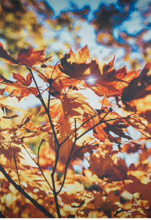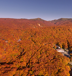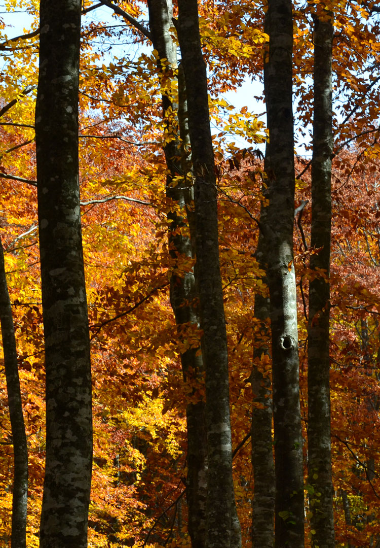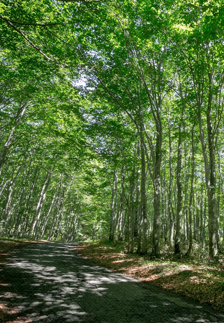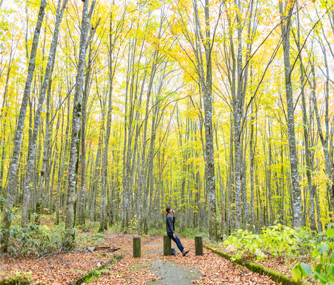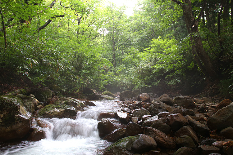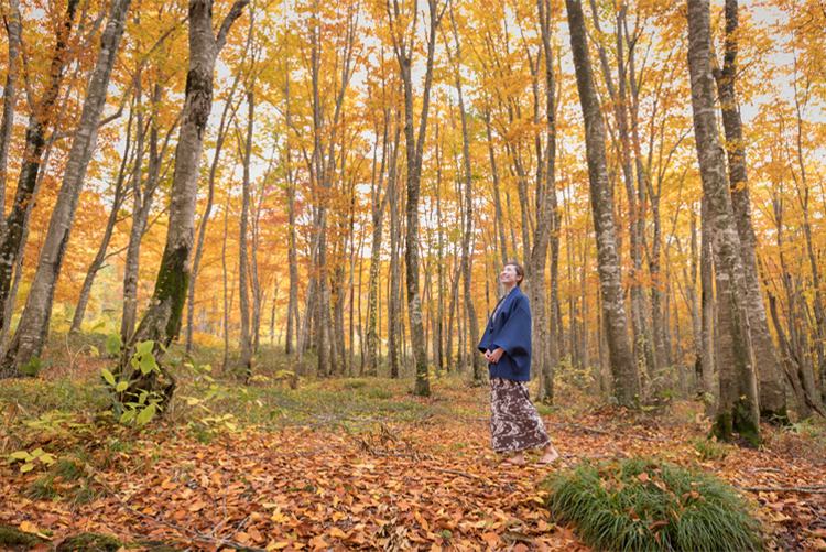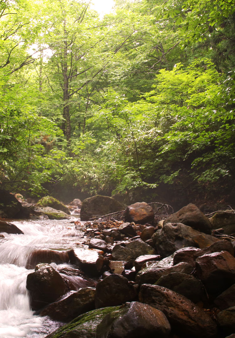自然の香りまで放ちそうな光差し込む新緑、日が当たり燃え上がるような紅葉、渓流を紫色に染める夕焼け。ブナの森に急に光が差し込む木漏れ日。刻一刻と変わる自分だけのステージ。