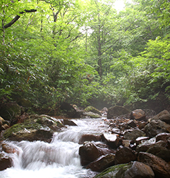 一滴の水が織りなすストーリーがここにあります。ブナの森が育む水が地中へしみこみ、コンコンと湧き出る美しい水となり、ゆっくりと湧き出る柔らかな温泉水となり、碧く神秘的な湖へと流れてゆく。