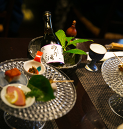 暗いからこそ研ぎ澄まされる感覚に頼り、自然に溶け込むとき、その宵の記憶は忘れがたいものに。美味しい日本酒に酔いしれ、陶酔の時間に浸ってください。