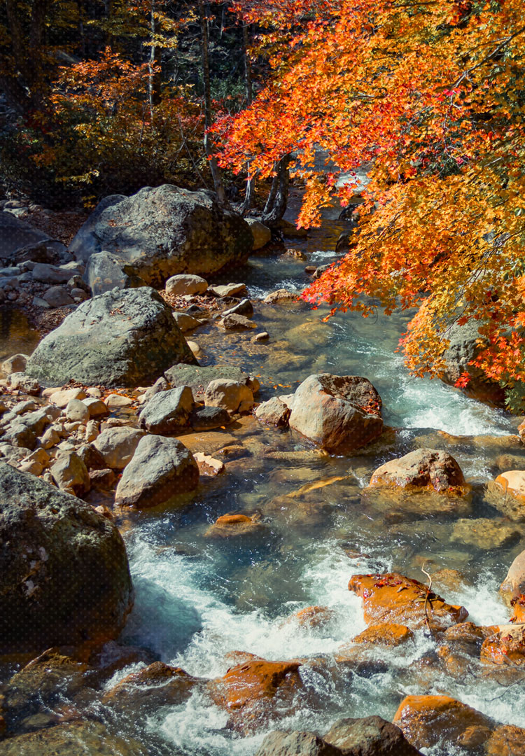 光差し込む新緑、燃え上がるような紅葉、夕焼けが渓流を紫色に染める。刻一刻と変わる自分だけのステージ。
